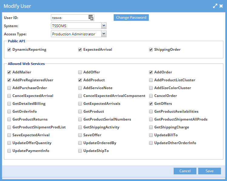 Web Services: (optional) Check the box beside each Web Service to which you want to give the user access. You'll use the credentials created here in every web service request.